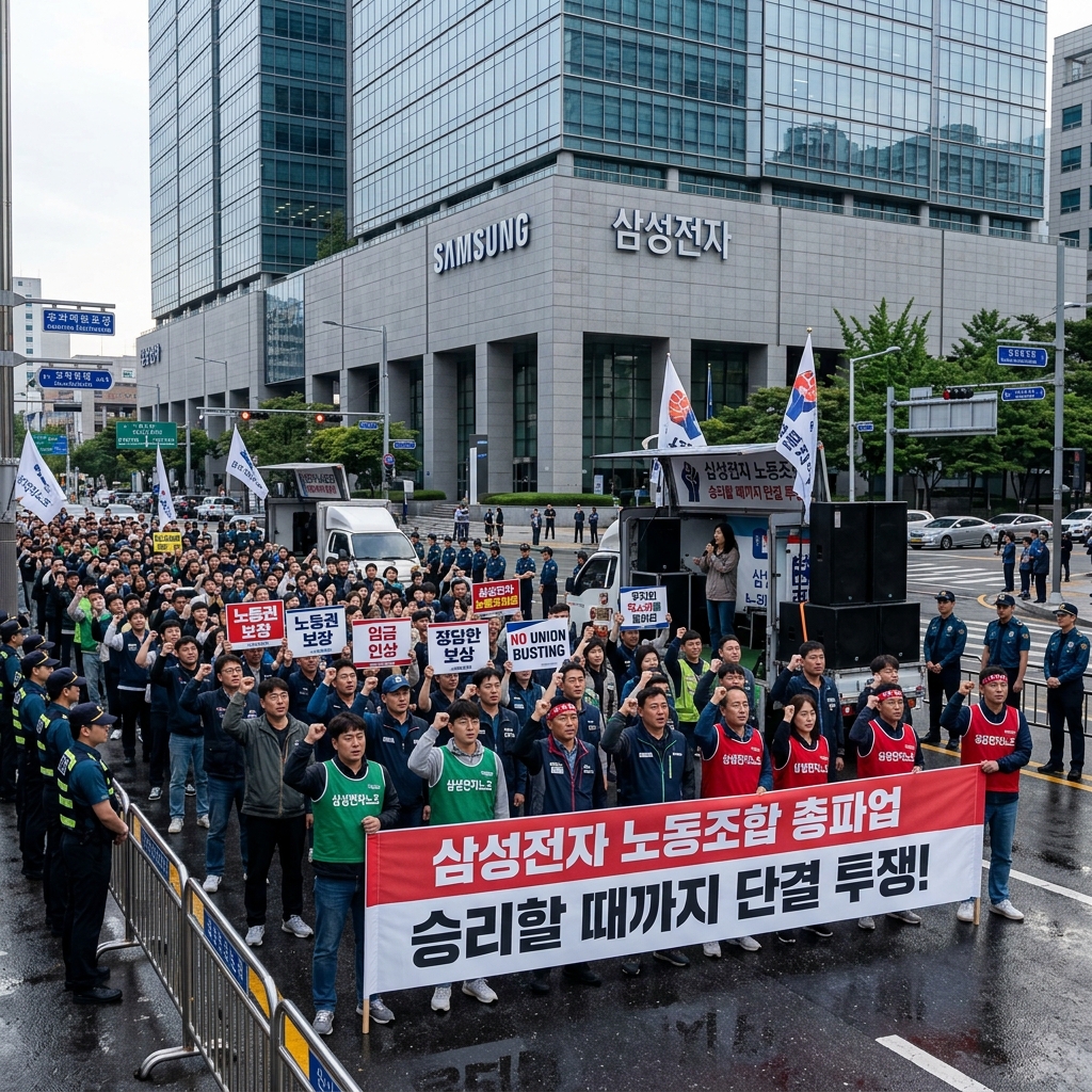 2026년 4월 23일, 경기 평택시 삼성전자 평택캠퍼스 앞에서 삼성전자노동조합 공동투쟁본부 주최로 '4·23 투쟁 결의대회'가 열렸습니다. 현장에는 약 4만 명이 집결했습니다. 이날을 기점으로 총파업 카운트다운이 시작됐습니다.
