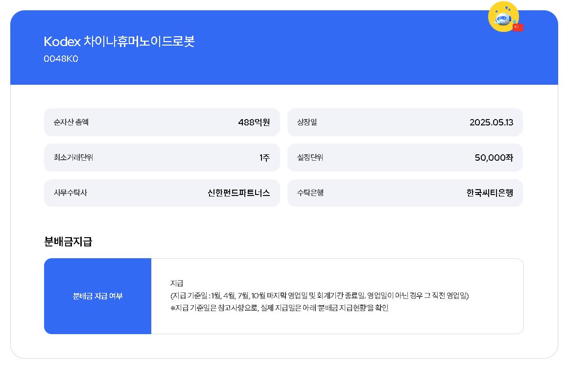 이 ETF 하나로 중국 휴먼노이드 로봇 시장 전체의 성장을 통으로 담을 수 있는 구조인 것이죠.