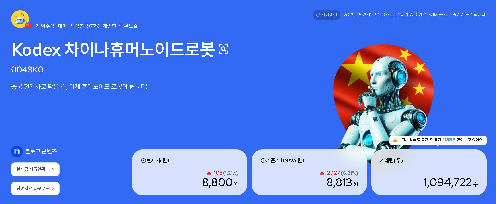 2025년, 휴먼노이드 로봇 양산의 원년이 본격화되면서 중국 정부와 기업들의 발 빠른 움직임이 시장에 큰 영향을 미치고 있습니다. 그리고 바로 이 흐름을 선점한 ETF가 등장했습니다. 그것이 바로 삼성자산운용의 KODEX 차이나 휴먼노이드 로봇 ETF입니다.