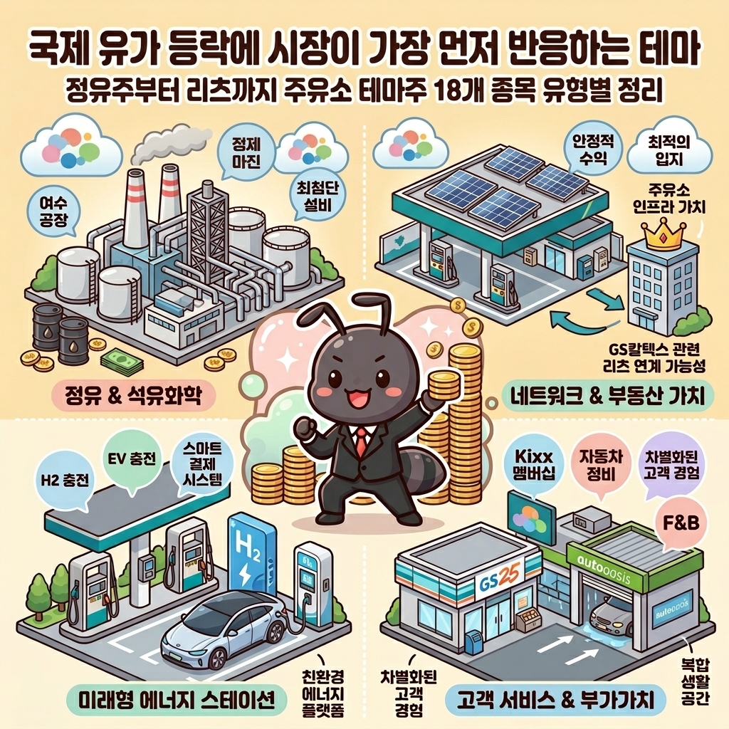 유가 오를 때 주목받는 주유소 관련주정유·도소매·리츠 유형별 핵심 종목 정리