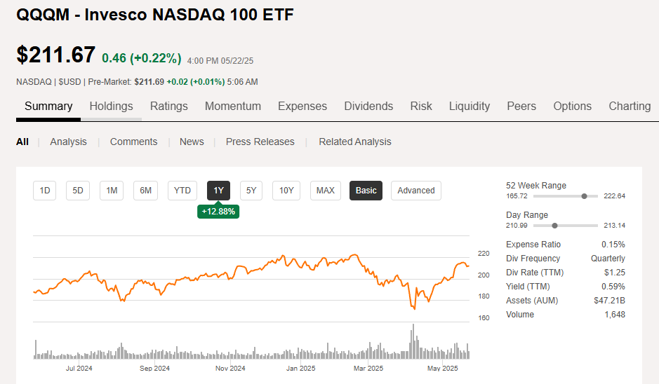 QQQ가 대표적인 ETF이며, 최근 10년간 343% 수익률을 기록했습니다. QQQM은 동일 지수 추종이지만 수수료가 낮아 최근 인기를 끌고 있습니다.