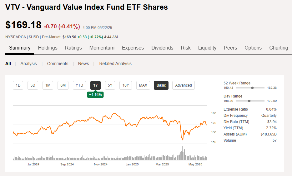 가장 대표적인 것은 VTV입니다. 버크셔 해서웨이가 주요 보유 종목 중 하나이며, 수수료는 0.04%입니다.