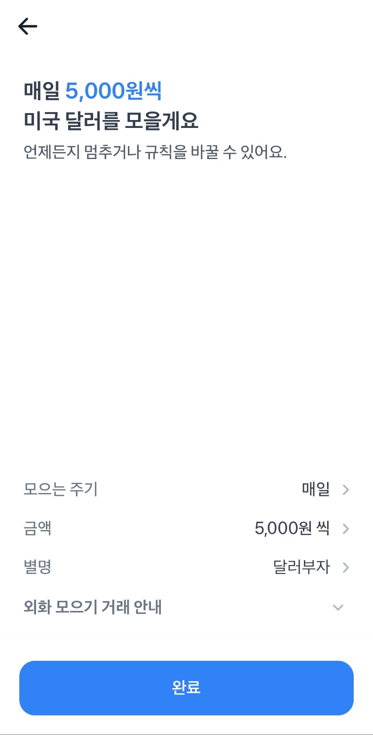 그 순간! 하루 5,000원씩 달러를 모으기 시작했어요.