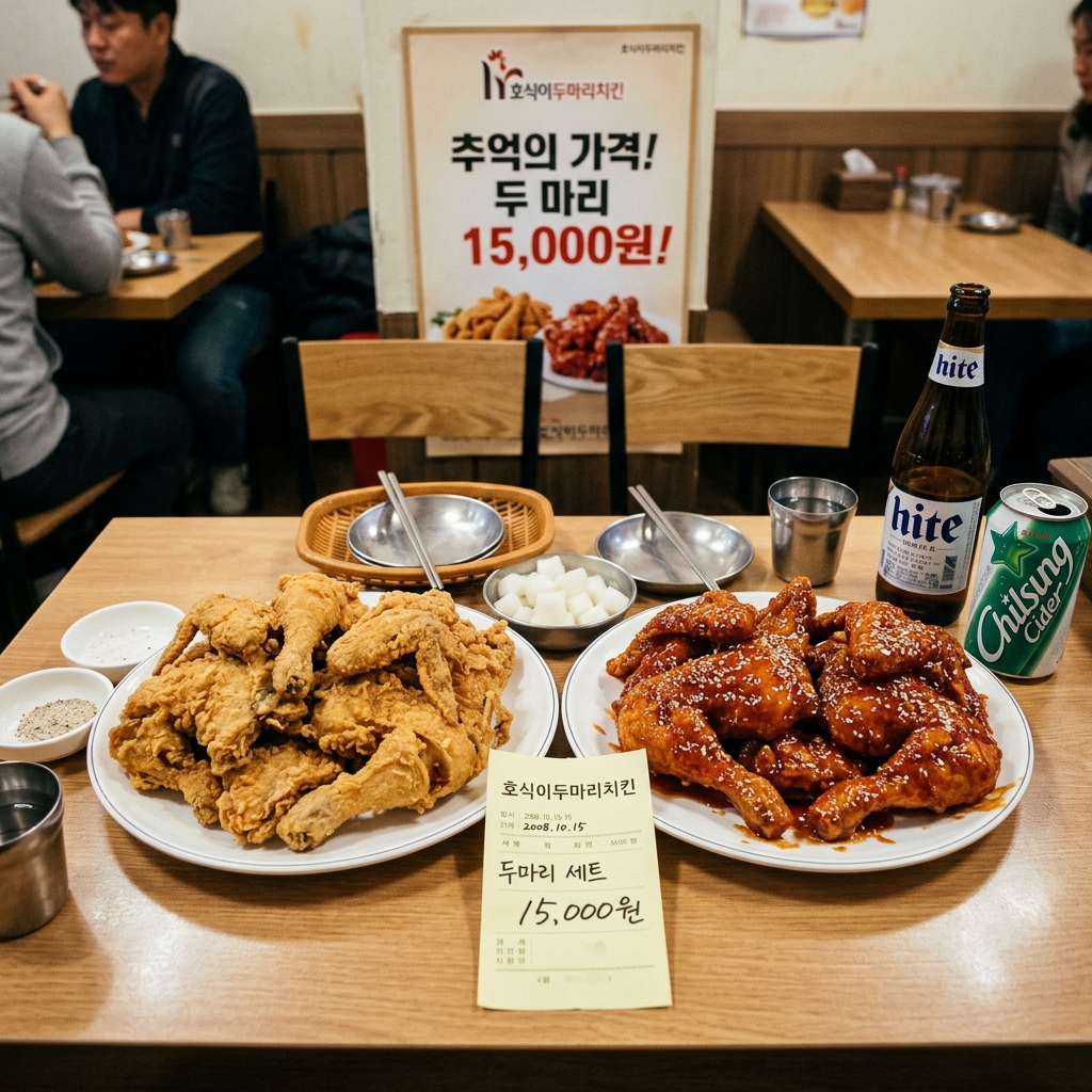 후라이드 2마리 기준 적용 시 25,000원 → 18,000원으로, 실질적으로 15년 전 가격 체험 가능.